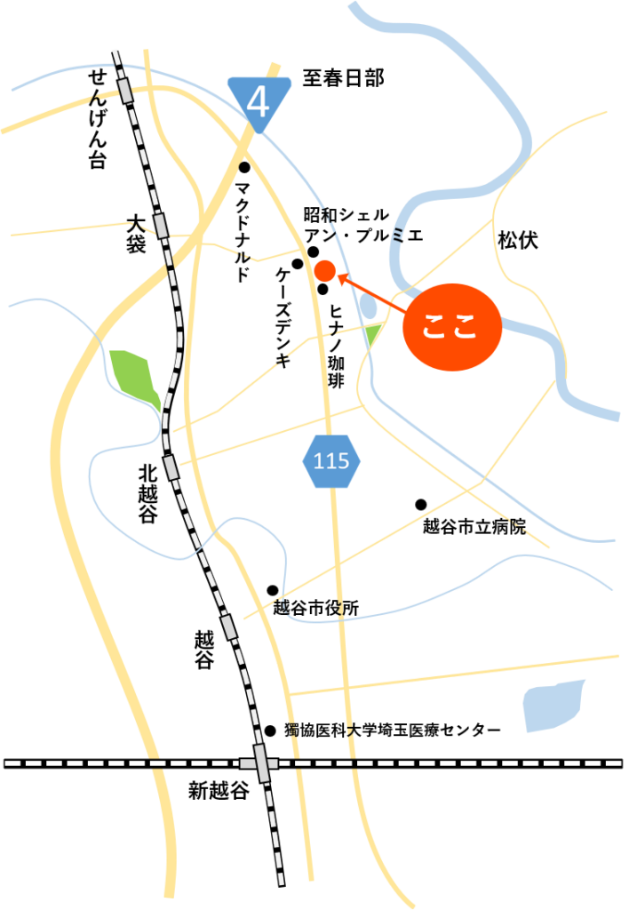 - 春日部、岩槻、浦和美園、東川口、草加北部、三郷北西部、吉川、松伏などが通院圏内かと思います。
