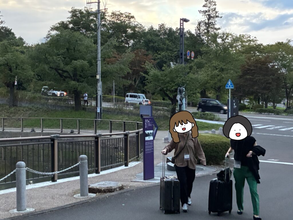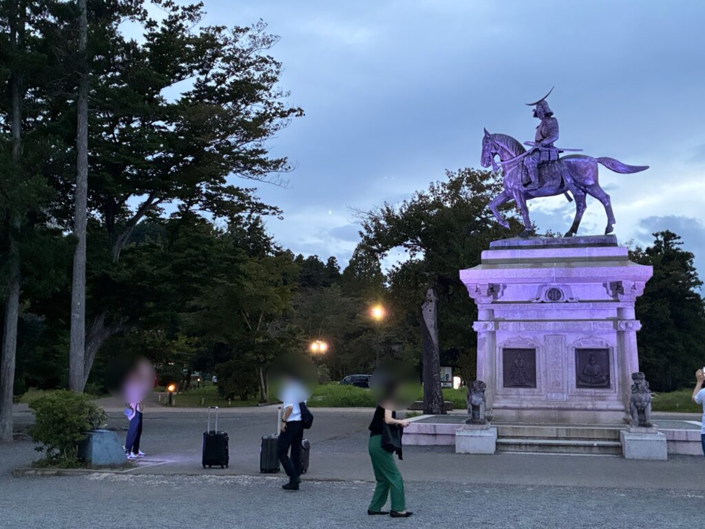 伊達政宗像を見に行くのにキャリーを引いて15分くらいかな?
